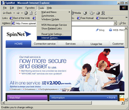 Lunch Internet Explorer6. Click "Tools" from the menu bar, and then click "Internet Options".