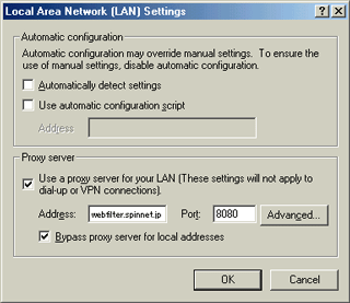 Use a proxy server for your LAN [These settings will not apply to dial-up or VPN connections].: