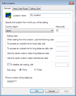 Click on the "Properties" button to display the "SpinNet Properties" window. Check "Use dialing rules" and click on the "Dialing Rules" button. |